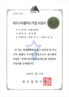 대구스타플러스 기업지정서