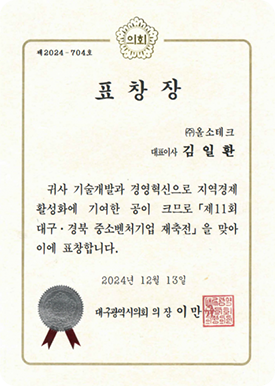 대구광역시장 표창장