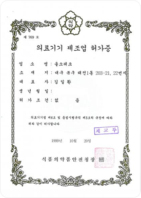 의료기기 제조업 허가증