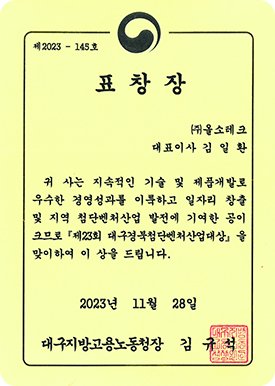 대구지방고용노동청 표창장