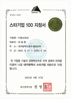 대구스타플러스 기업지정서